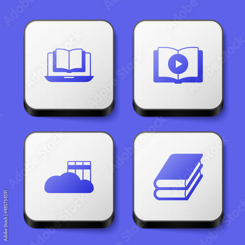 Set Online class, Audio book, Cloud or online library and Book icon. White square button. Vector