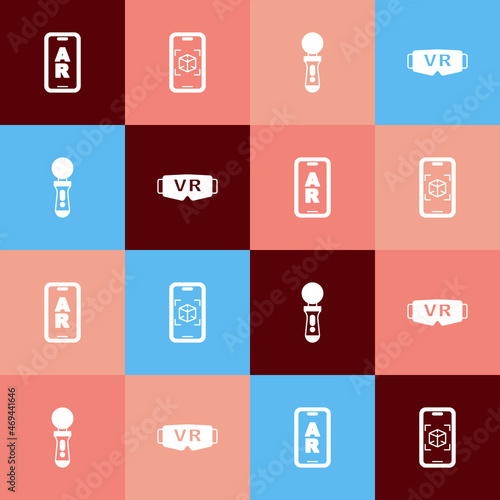 Set pop art Augmented reality AR, 3d modeling, VR controller game and Virtual glasses icon. Vector