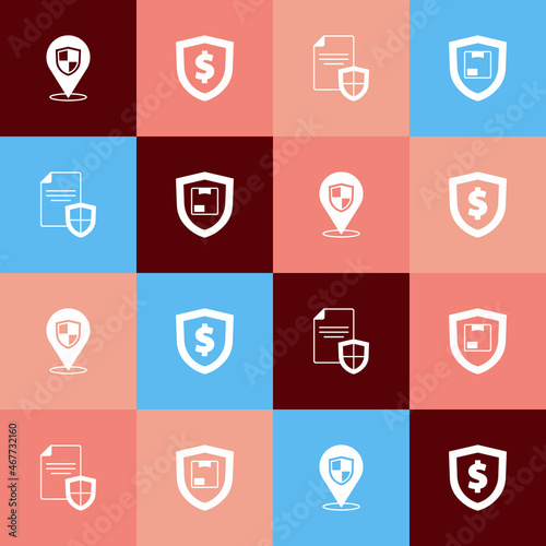 Set pop art Location shield, Shield with dollar, Contract and Delivery security icon. Vector
