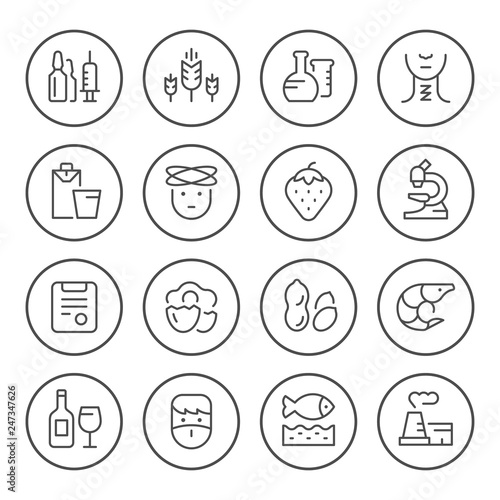 Set round line icons of allergy