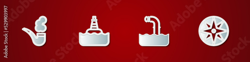 Set Smoking pipe, Floating buoy, Periscope and Wind rose icon. Vector