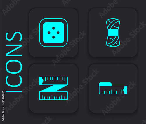 Set Tape measure, Sewing button for clothes, Yarn and icon. Black square button. Vector