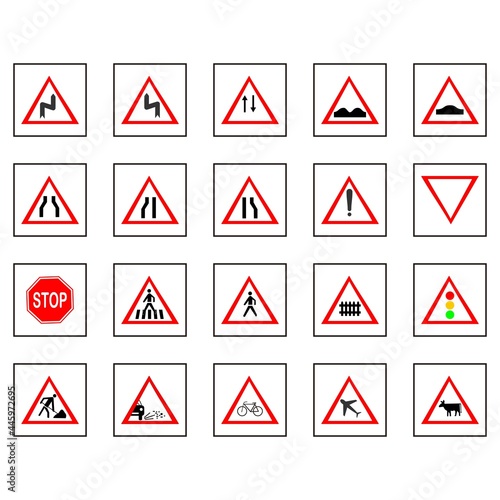 set traffic warning sign icon, traffic sign icon vector symbol illustration