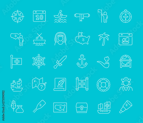 Set Vector Line Icons of Columbus Day