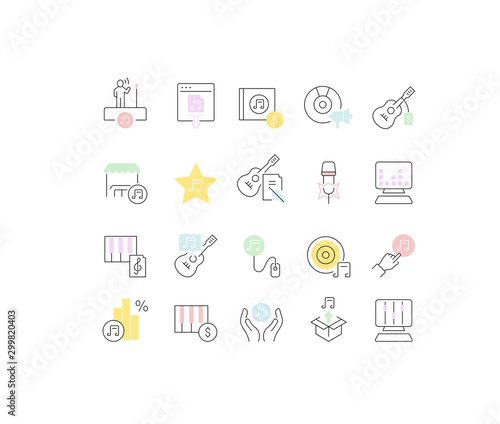 Set Vector Line Icons of Music Business