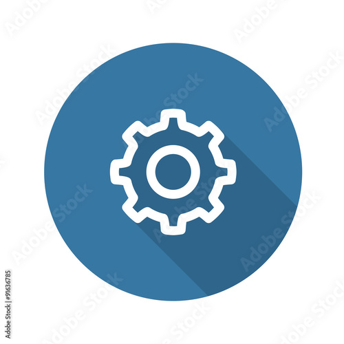 Settings Icon. Gear with Blue Background. Long Shadow. Flat Styl