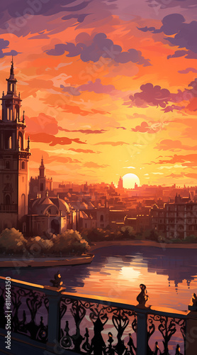 seville background for social media. illustration, sunset