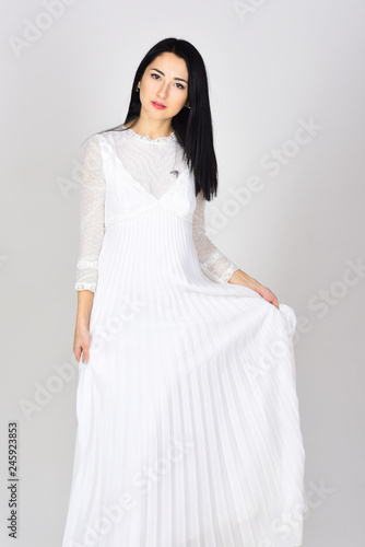 Sexy woman with natural makeup. Beauty salon and hairdresser. Wedding dress fashion. Woman in white dress. Fashion portrait of woman. Dreams come true. Glamour fashion model