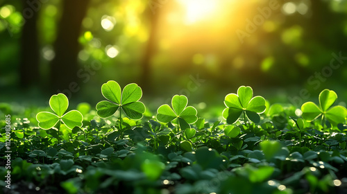 Shamrocks Grow in Sunlight, Lush Green Foliage, Nature's Beauty