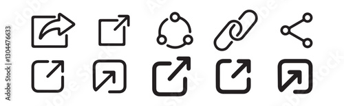 Share icon link set.share link, external link black vector icon set. Isolated symbols on white background. vector illustration eps 10.