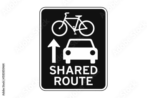 Shared Roadway Sign Vector Illustration – Bicycle and Car Symbol, Traffic Safety, Urban Transport, Black and White, Modern Street Sign Design, Transparent Background