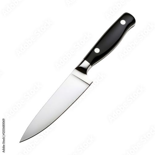 sharp kitchen knife with stainless steel blade and black ergonomic handle, ideal for precise cutting