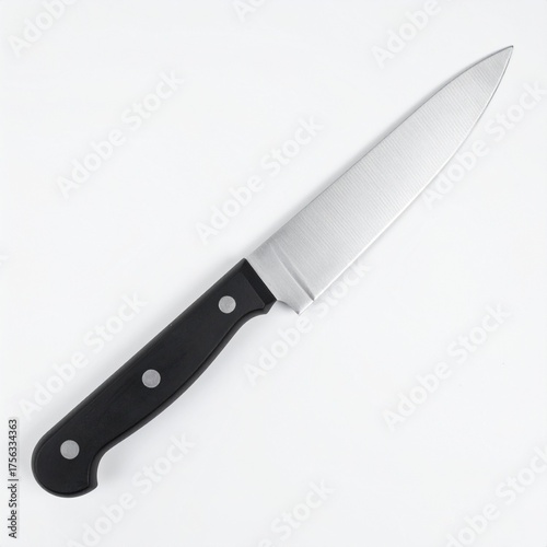 Sharp Stainless Kitchen Knife with Black Handle for Premium Household Object and Culinary Concept
