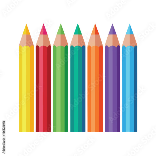 Sharpened Colored Pencils Set Arranged in a Row