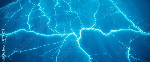 Shattered Ice with Cold Glowing Cracks, Abstract Art Background