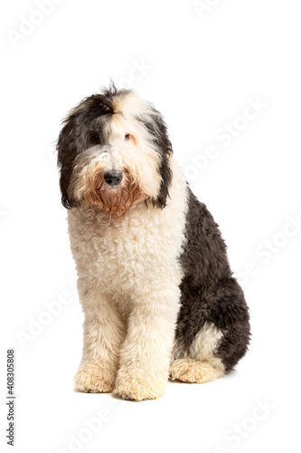 Sheepadoodle dog isolated on white