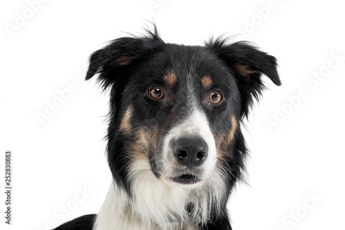 shepherd dog portrait in a white photo studio background