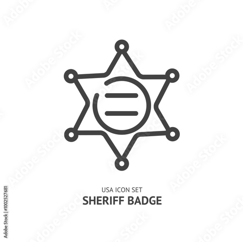 Sheriff Badge Star Shape Black Thin Line Icon American Justice Symbol Concept on a White. Vector illustration