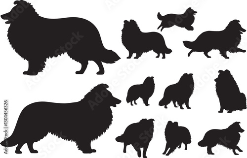 Shetland Sheepdog Silhouette on White Background
