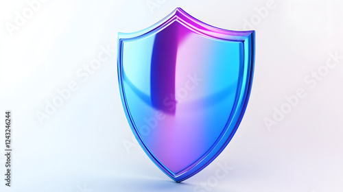 Shield depicting protection. shield 3d icon. Protection, defense and security concept symbol: blue and purple shield on isolated on white background