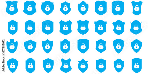 Shield icon set in vintage style. Protect shield security line icons. Badge quality symbol, sign, logo or emblem. Vector illustration