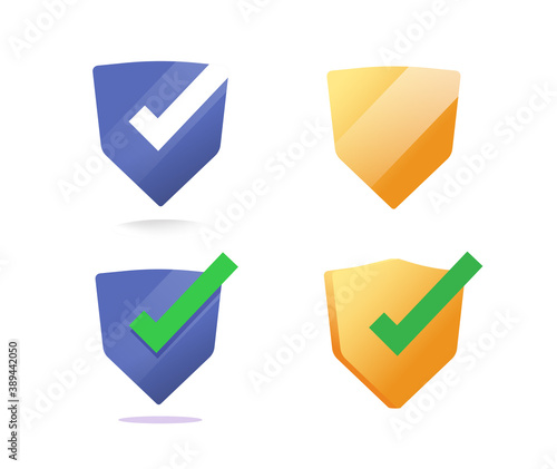 Shield icons vector set with check mark, security protected defence sign, approved guard symbol isolated clipart collection