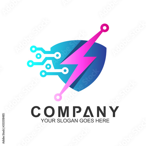 shield tech logo, Security logo and thunder icons