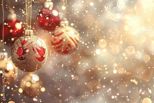 shimmering gold and red christmas ornaments on festive background holiday decoration digital illustration