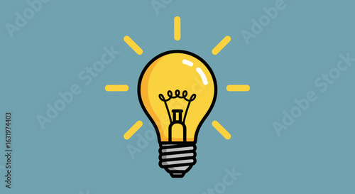 Shining Light Bulb Icon with Rays of Inspiration, Symbolizing Ideas and Innovation on Blue Backdrop