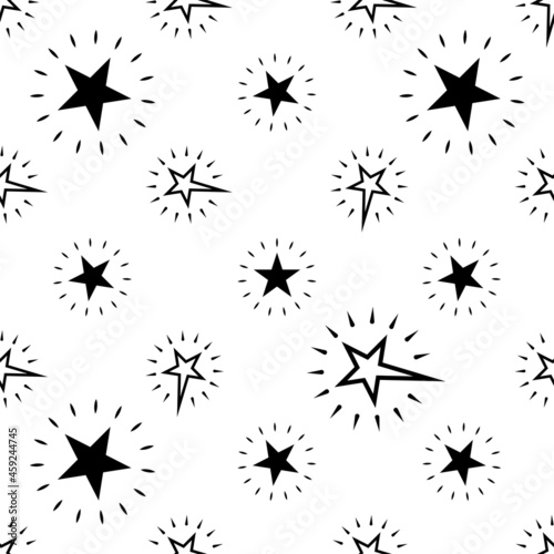 Shining Star Icon Seamless Pattern, Glowing Bright Star Shape