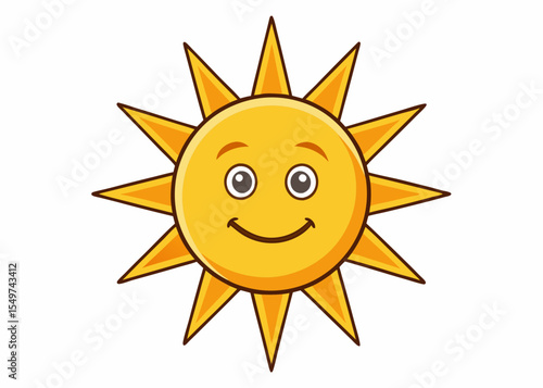 Shining sun with rays icon for weather design. Summer, sunlight, nature, sky. Vector illustration isolated on white background.