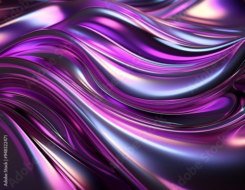 Shiny chrome background with fluid, iridescent waves and a silver gradient, enhanced by neon purple hues.