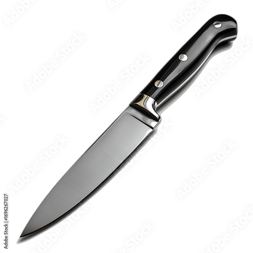 Shiny Kitchen Knife with Black Handle on Transparent Background
