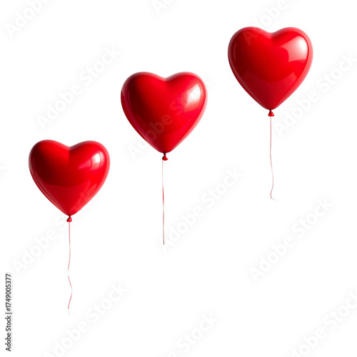 Shiny red heart-shaped balloons symbolize love and romance