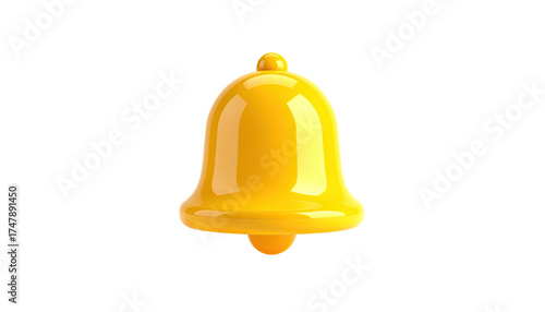 Shiny yellow bell icon with a glossy surface on a stark black background