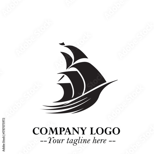 Ship Moving Fast Logo Symbol in Black on the White Background with Modern Maritime Design