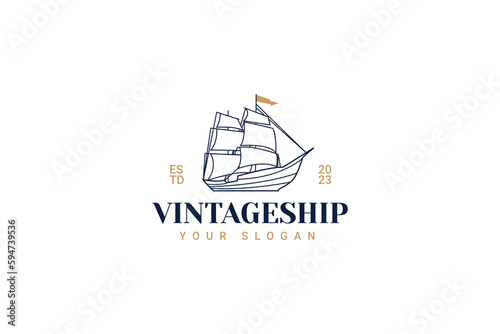ship sailing vintage logo vector icon illustration