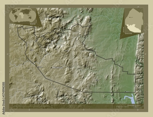 Shiselweni, Eswatini. Labelled points of cities