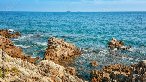 Shooting of the coast between the French towns of Juan-les-Pins and Antibes in France