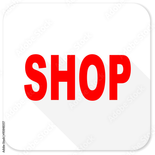 shop red flat icon with long shadow on white background