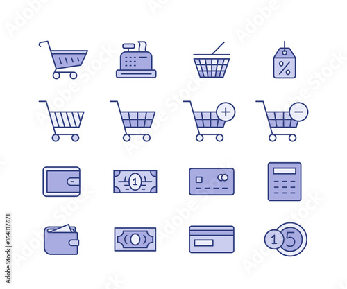 Shopping and icons for online store website. Digital payments.