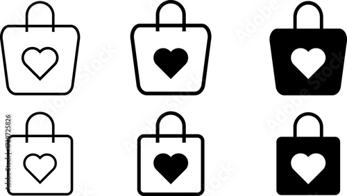 Shopping bag icon with heart symbol. Favorite shopping symbol. Shop bag with love sign outline and bold style