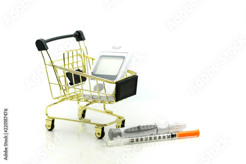 Shopping cart of medicine, diabetes, glycemia, health care concept.