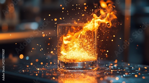 Shot glass with fiery flaming alcohol