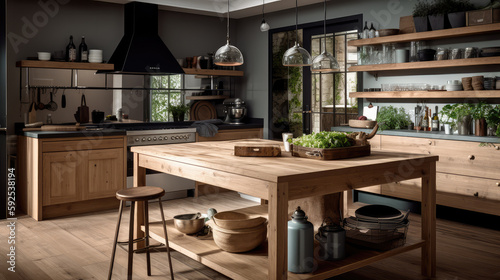Shot insode a modern kitchen of a new builded house. Generative AI.