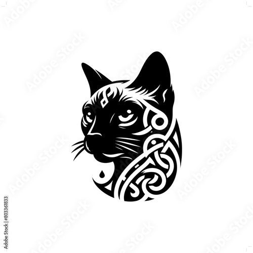 Siamese cat silhouette in animal celtic knot, irish, nordic illustration