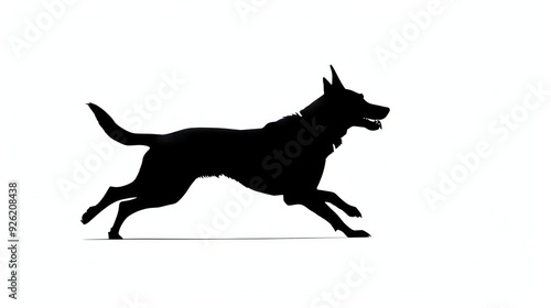 Side profile silhouette of a playful dog jumping with its ears and tail extended