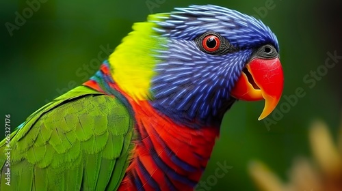 Side view Closeup of beautiful and colorful Lorikeet Green naped bird.