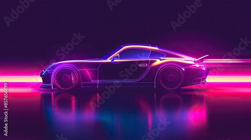 Side view neon glowing sport car silhouette. Abstract modern styled vector illustration