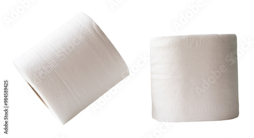 Side view set of white tissue paper rolls isolated on white background with clipping path
